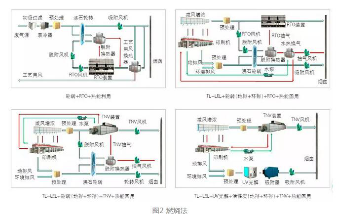 該方法具有如下特點(diǎn):TL-LEL減風(fēng)增濃使熱能循環(huán)利用,節(jié)省能源,減少排風(fēng)量,為末端治理節(jié)約投資;TNV投資少,2萬風(fēng)量的約100萬元左右;燃燒氣和轉(zhuǎn)輪凈化氣均可達(dá)標(biāo);用轉(zhuǎn)輪吸附印刷和干復(fù)機(jī)下排風(fēng)和環(huán)境風(fēng)后送入直燃爐,解決了因減風(fēng)增濃而造成的環(huán)境污染,車間環(huán)境更清潔。該方法采用了換熱式直燃爐,自燃濃度要求比RTO高,正常運(yùn)轉(zhuǎn)要消耗一定燃?xì)?,?萬風(fēng)量為例,燃?xì)庀募s10m3/h,月均消耗費(fèi)用約2萬元,性價(jià)比較高 。