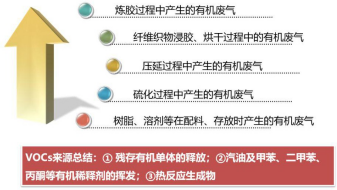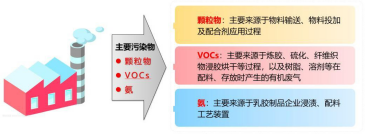 輪胎制品(輪胎翻新除外)、橡膠板管帶、橡膠零件、運動場地用塑膠和其他橡膠制品等企業,主要產排污環節包括煉膠、硫化及膠漿制備、浸漿、膠漿噴涂和涂膠工藝過程或生產裝置。廢氣特征污染物有非甲烷總烴、甲苯、二甲苯、臭氣濃度、惡臭等。輪胎翻新的成型工藝廢氣特征污染物為非甲烷總烴、臭氣濃度、惡臭特征污染物等。日用及醫用橡膠制品, 主要產排污環節包括配料、浸漬、硫化等,廢氣特征污染物為臭氣濃度、惡臭等。